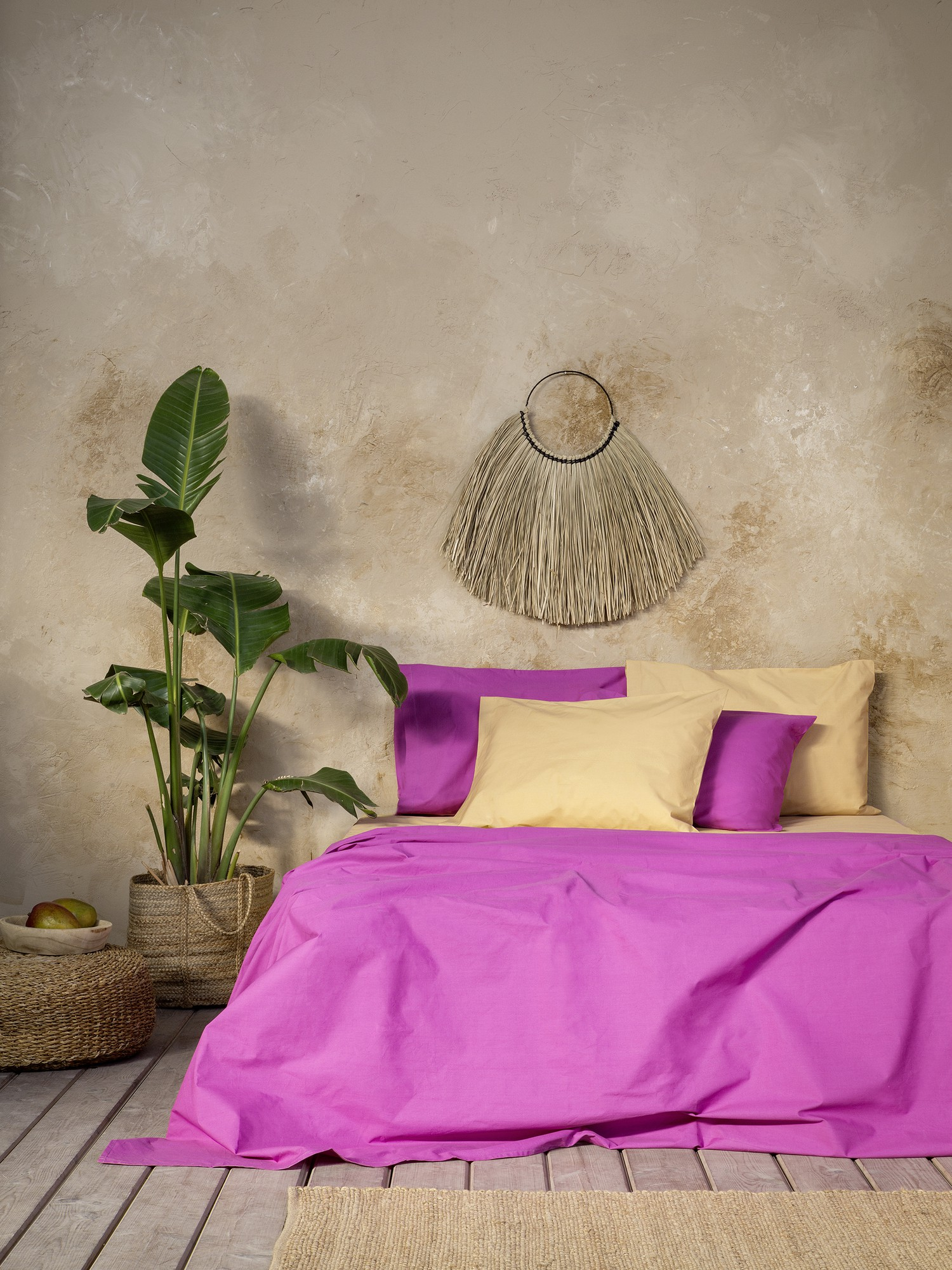 Τα βαμβακερά σεντόνια Primal Orchid Pink ανήκουν στα προϊόντα που βάφονται με reactive dyed ώστε το φωτεινό ροζ χρώμα τους να διατηρείται ατόφιο για πολλά χρόνια, χωρίς να ξεβάφει από τις συχνές πλύσεις και το πέρασμα του χρόνου. Η ζωντανή ροζ τους απόχρωση αποπνέει ενθουσιασμό και ζωντάνια και είναι από trend χρώματα της νέας σεζόν. Τολμήστε τη μονοχρωμία ή το mix and match με σεντόνια ή μαξιλαροθήκες άλλου χρώματος, ώστε να έχετε το επιθυμητό σε εσάς αποτέλεσμα.