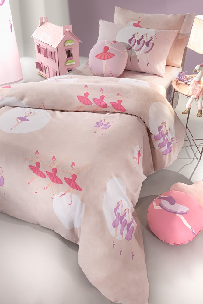 Σετ σεντόνια 3 τεμαχίων από 100% βαμβάκι, το σετ αποτελείται από κατωσέντονο 165×250εκ., πανωσέντονο 165×250εκ. και μαξιλαροθήκη 50×70εκ. Ολοκληρώστε το παιδικό σετ με τα υπόλοιπα προϊόντα της σειράς Ballerinas.