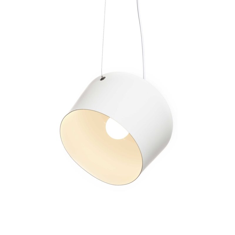 Φωτιστικό μονόφωτο κρεμαστό, από μέταλλο. Μπορεί να κρεμαστεί είτε κάθετα είτε υπό κλίση, ανάλογα με το πώς και προς τα πού θέλουμε να φωτίσουμε στο χώρο μας. Βγαίνει σε διάφορα χρώματα.