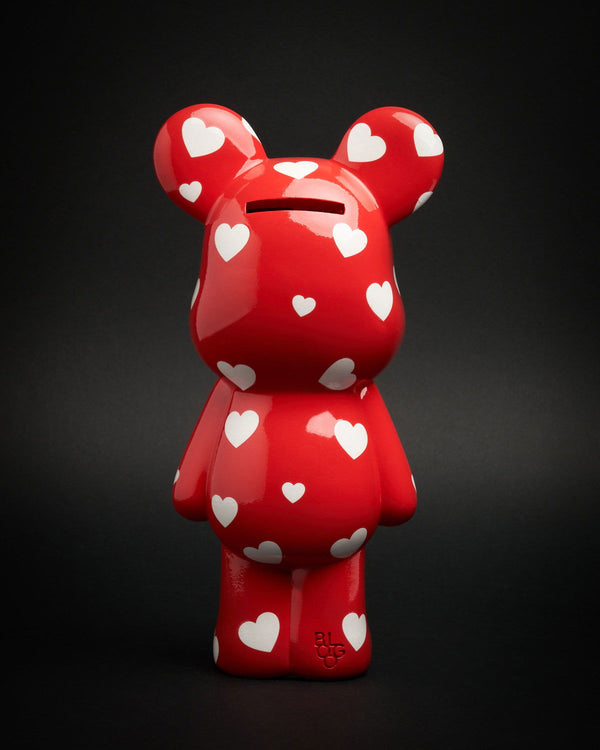 Blogo Design Κουμπαράς Teddy – Κόκκινο Καρδιές Λευκές
