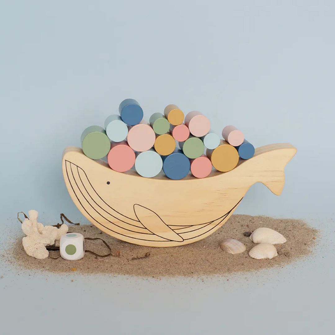 Το παιχνίδι περιλαμβάνει μια φάλαινα, ένα ζάρι και 18 μικρά ξύλινα μπλοκ σε διάφορα μεγέθη και χρώματα. Είθε ο καλύτερος παίκτης να κερδίσει!